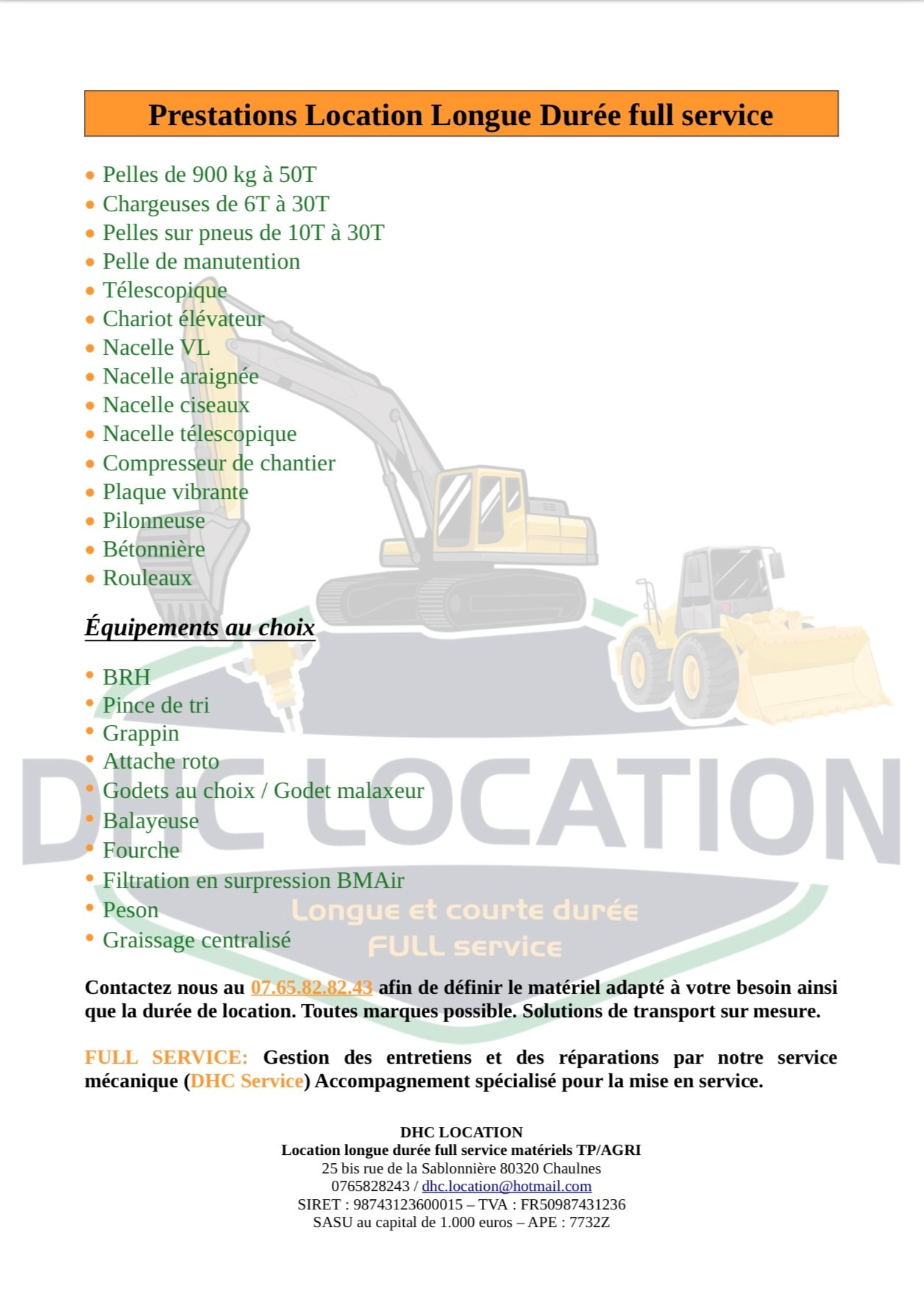 Location full service de votre matériels de TP et de Manutention.